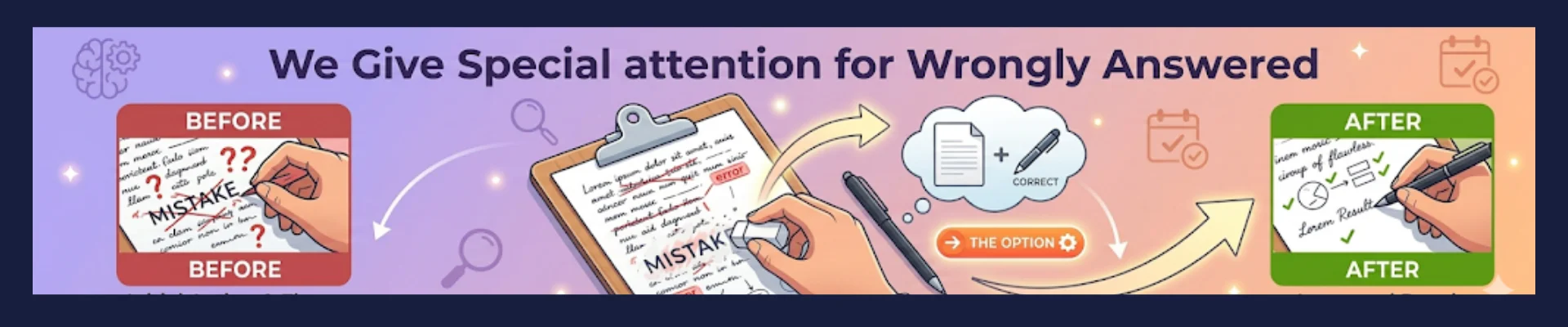 Tracks wrong answers and resurfaces them using spaced repetition automatically.